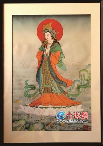 据了解,唐卡的绘制要求严苛、程序极为复杂,必须按照经书中的仪轨以及要求进行,包括绘前仪式、制作画布、构图起稿、着色染色、勾线定型、铺金描银、开眼、缝裱开光等一整套工艺程序。制作一幅唐卡用时较长,短则半年完成,长则十余年。唐卡《妈祖》是唐卡创作中的一次创新,它运用了西藏特殊的制作工艺,以艺术的形式传播妈祖文化,是闽藏文化的一次完美交融。