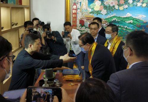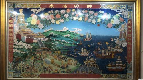 今年福建馆最特别的当属热贡唐卡代表性传承人桑吉才让唐卡艺术作品《神昭海表》,这也是该作品首次亮相福建馆。它以妈祖为故事主线,将海峡两岸文化交流浓缩到了这幅唐卡上,栩栩如生。