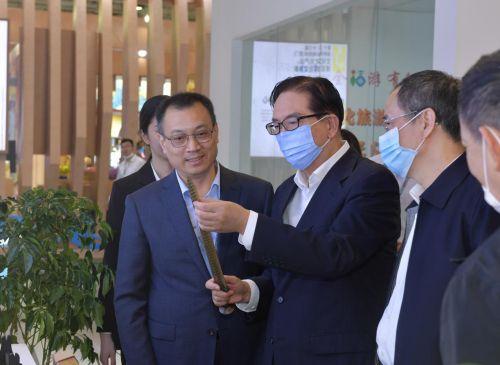 福建省文化旅游品牌馆总策划陈长青陪同领导巡馆,详细汇报福建馆的特色和亮点