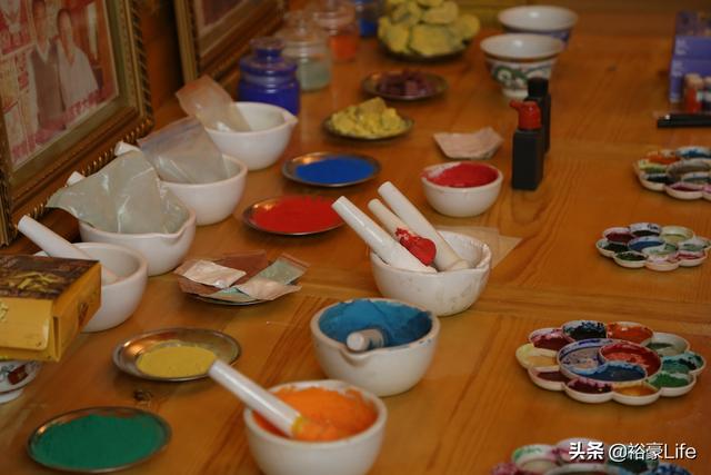 绘画原料多取材于天然矿物质、植物、动物中,热贡唐卡色泽经久不衰。