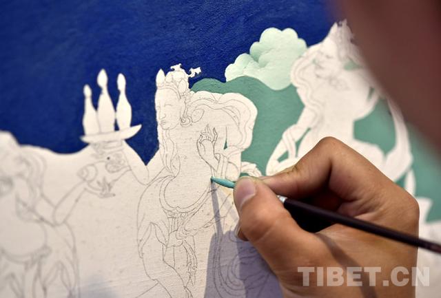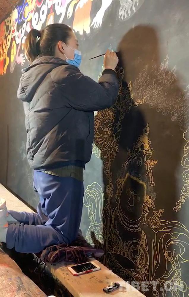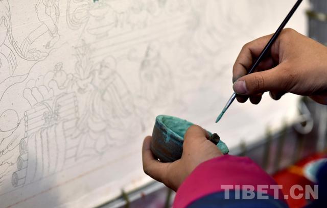 白描、勾线、上色……每一个步骤重复得熟稔于心,尼玛仓拉进入了画院高级班学习。去年,她更是得到画院老师们的认可,加入到功德林寺壁画修复的行列。