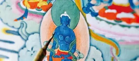 绘制唐卡所用的颜料,全部取自天然物质,以产于雪域的天然矿物、植物为主要生产原料,色泽纯正、品质优异,耐光极佳、耐候性极强,事实证明其历千年而不明显褪色,因而享誉四海。