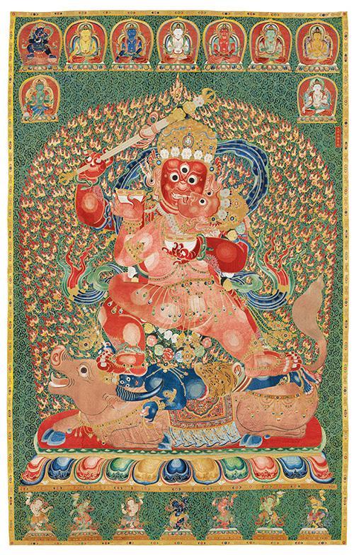 2014年11月26日,中国内地知名藏家刘益谦在香港佳士得秋拍中以3.1亿港元的落槌价竞得了一件备受关注的“大明永乐年御制刺绣红夜摩唐卡”。