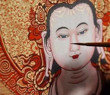 绘制唐卡很多细节都要注意,很多绘画的部分都非常细致,有些部分需要用到很细的画笔一笔一笔的勾画,所以很多唐卡的画笔都是用极细的狼毫来制作。