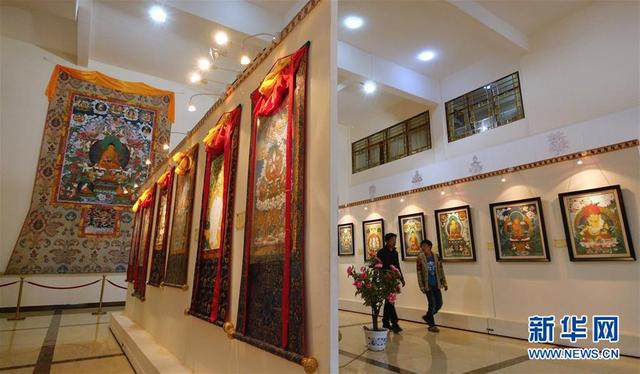 这是西藏唐卡画院的唐卡展厅(5月25日摄)。