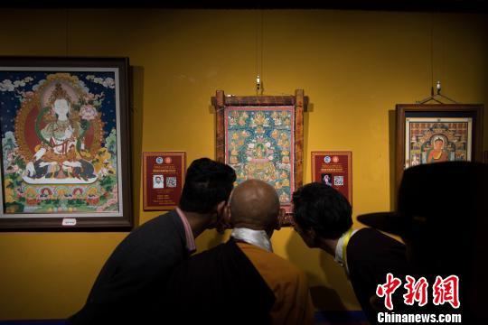 图为拉萨市民参观艺术节唐卡精品展。 何蓬磊 摄