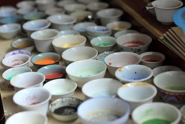 颜料传统上是全部采用金、银、珍珠、玛瑙、珊瑚、松石、孔雀石、朱砂等珍贵的矿物宝石和藏红花、大黄、蓝靛等植物为颜料以示其神圣,是中华民族民间艺术中弥足珍贵的非物质文化遗产。