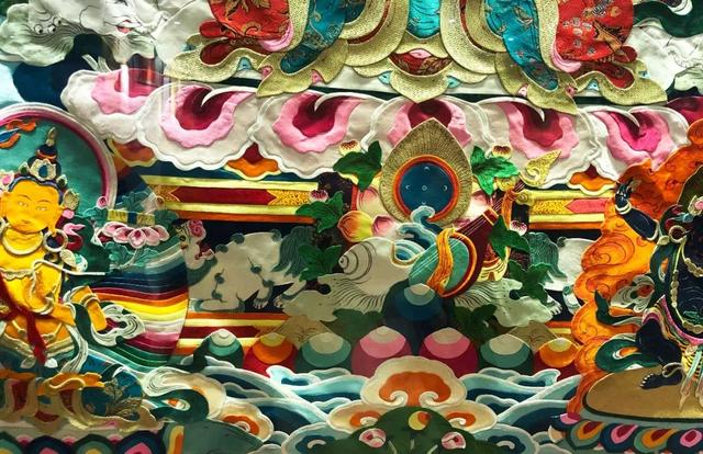 唐卡是藏文音译,指用彩缎装裱后悬挂供奉的宗教卷轴画。