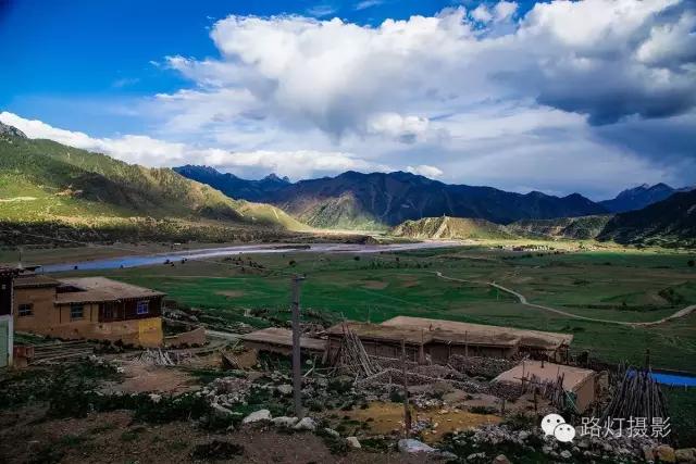 比如村座西朝东,在半山腰上,在这里四望,视界开朗,耀眼的阳光穿透云层,直射在对面的高山上,蜿蜒的扎曲河从山下向东南流去,最终在昌都与昂曲河汇合成澜沧江。