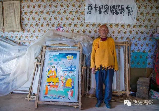 在玉树去昌都的路上会经过噶玛乡,乡里的比如村有一位唐卡大师,蜚声全藏。绕路两三公里,我有缘拜访到了嘎玛嘎赤画派第十代传人嘎玛德勒大师。