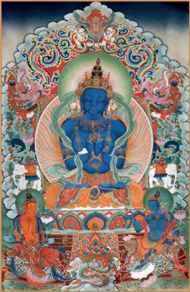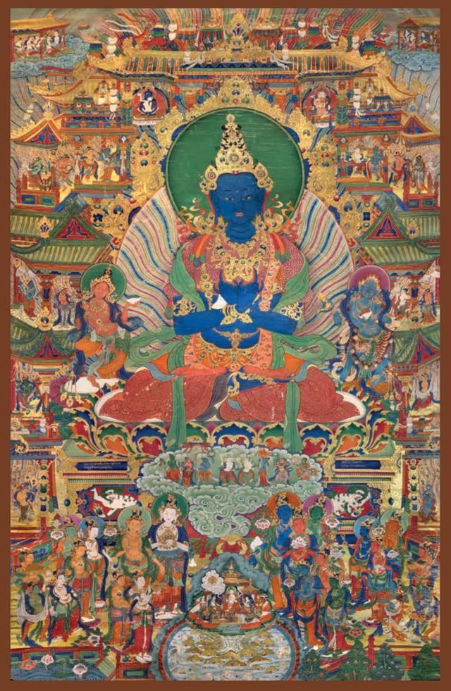 嘎玛嘎赤画派是西藏传统绘画三大流派之一,形成于16世纪下半叶,由南喀扎西活佛开创,17世纪以后走向繁荣,主要流行于西藏昌都为中心的康区一带,传承至今。此画派把印度佛像艺术的人物造型和量度比例,中原内地绘画中的背景布局与敷色晕染技法,以及西藏传统的风景处理技巧等完美地融为一体,风格独具。
