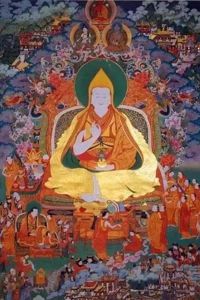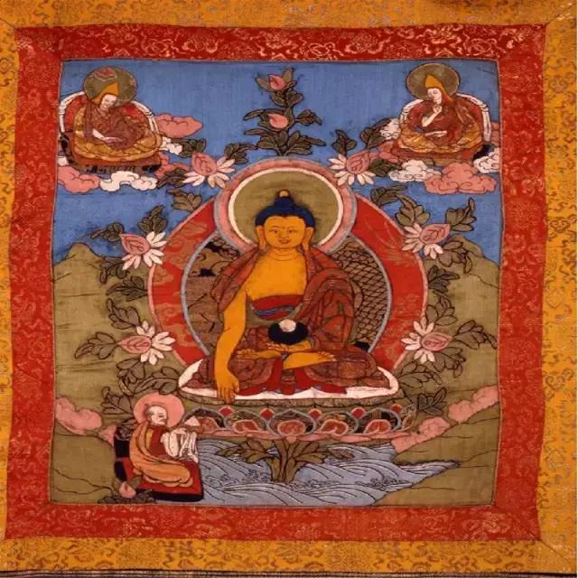 第五世达赖喇嘛(清代——布画),17世纪系门唐派作品。
