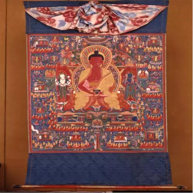 唐卡,藏语译为“卷轴画”。当人们步入到布达拉宫、西藏各个寺庙之殿堂中,常会被那具有鲜明的民族特色和宗教气息及独具风格神话般动人的画面所吸引,止步于它的面前,流连忘返。在西藏这个佛教圣地,唐卡如同其他佛教物品一样,与西藏宗教文化内涵中相伴相随,紧密联系在一起。