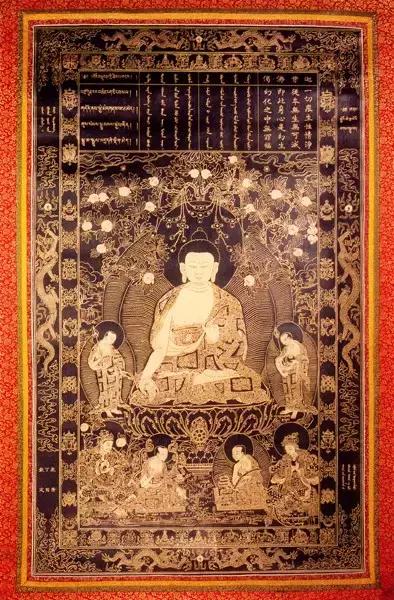 释迦牟尼幼名悉达多,出身于无垢释迦王族,释迦牟尼的意思是“能仁”、“能儒”、“能忍”、“能寂”等,因父为释迦族,成道后被尊称为释迦牟尼,义即“释迦族的圣人”。此唐卡也叫做金唐。金唐指的是以金汁为底的唐卡,能使画面神圣、金碧辉煌。