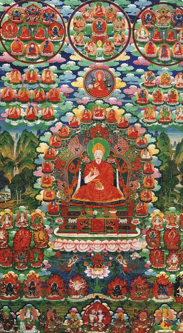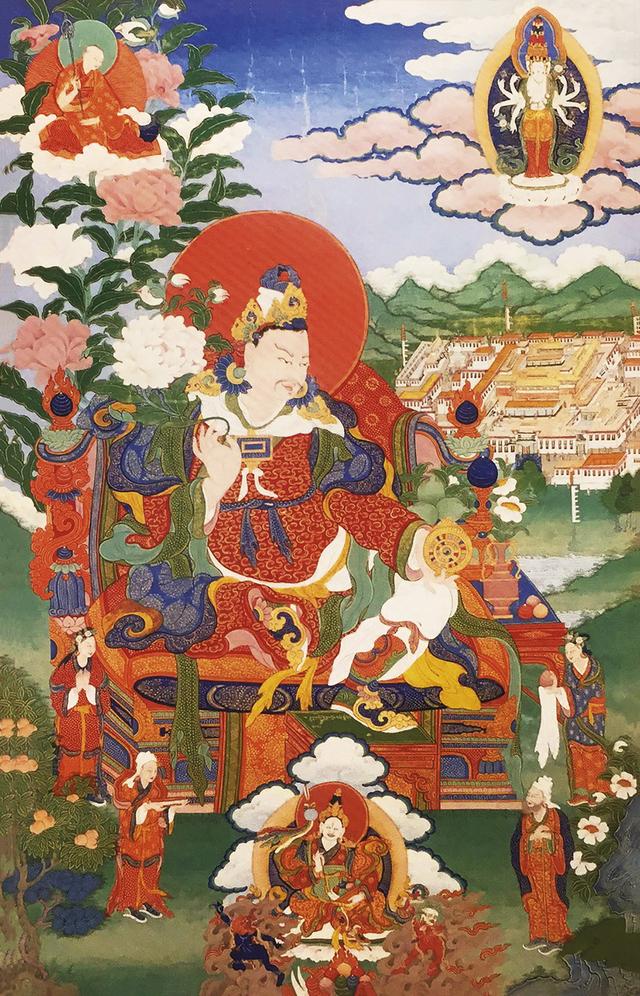 18 世纪 西藏地区新勉唐风格 达拉喇嘛源流之松赞干布唐卡 故宫博物院藏