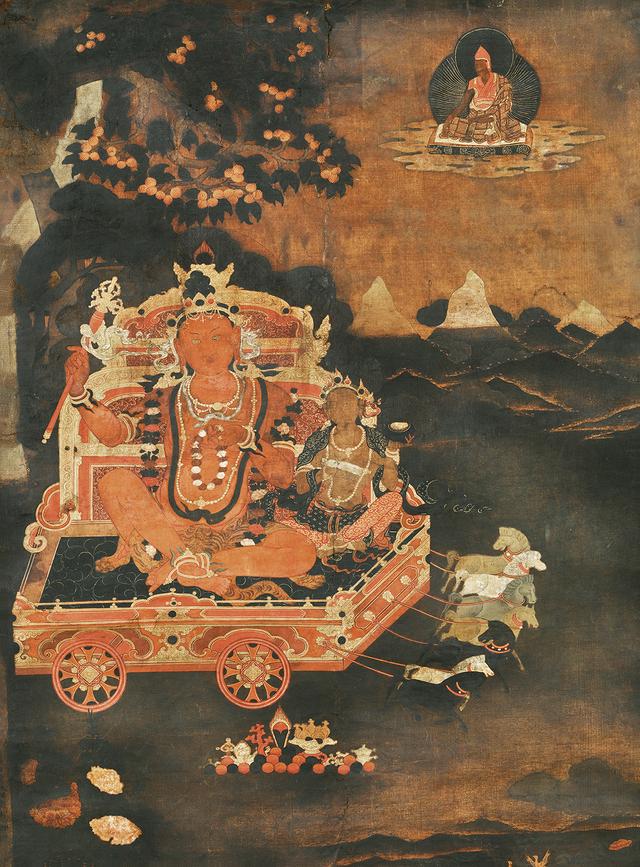 卫藏地区清代新勉唐风格唐卡的色彩偏于沉稳厚重,色彩涂抹技法也应用较多。