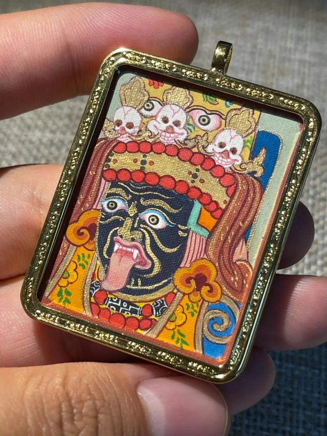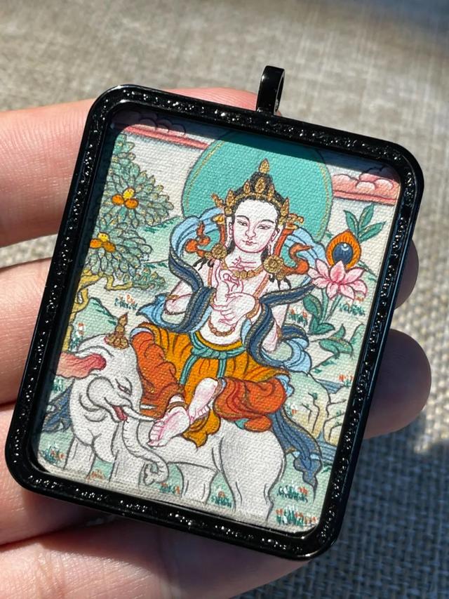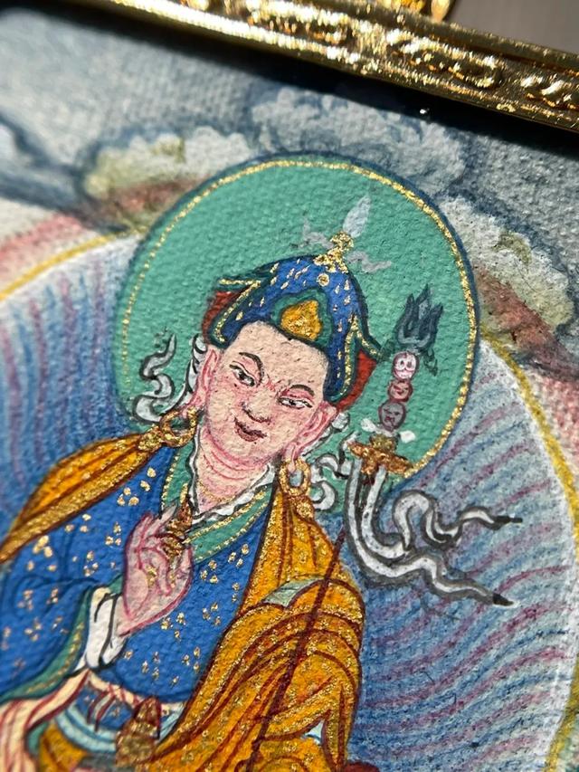 开光加持――唐卡原本是藏密工具,历来被人们视为圣物和珍宝。所以在绘制完成之后,要举行清净、除障仪轨,以示清净、圣洁。然后由高僧大德诵经祭礼,加持开光。有的在背面写有咒语或印上开光者的手印或指印。这些仪式全部进行完后,才能算该作品完成并方可供奉之。