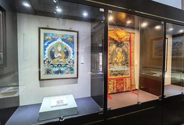 此次展览展出86件唐卡精品,其中来自青海黄南藏族自治州的唐卡,由两代中国工艺美术大师夏吾才郎和更登达吉,及更登达吉的徒弟周先卡、拉藏加绘制。夏吾才郎(1922-2003)是当代藏族唐卡艺术巨匠,早在1988年就被评为中国工艺美术大师,成为藏族历史上首位获此殊荣的艺术家。更登达吉,是夏吾才郎长子,自幼跟随父亲学画唐卡,技艺高超又注重对唐卡的传承与推广。从艺四十余年来,已带徒四十多名,为热贡唐卡的传承培养了大批后备力量。