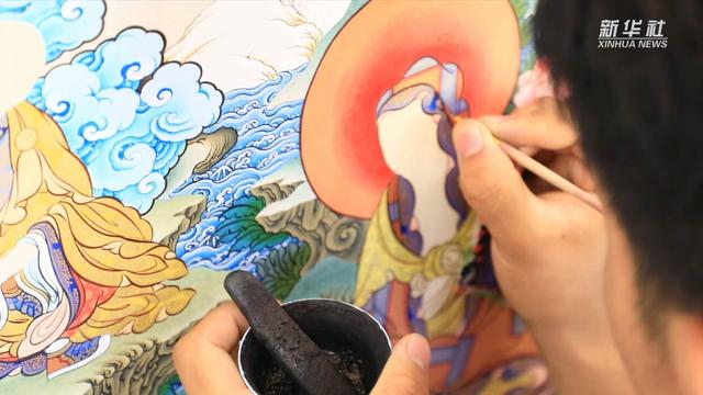 随意走进一户人家,你也许就会看到唐卡艺人正手拿画笔,认真作画。
