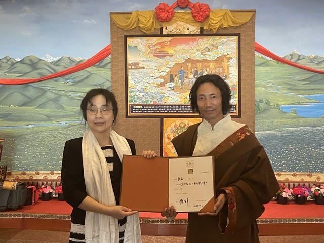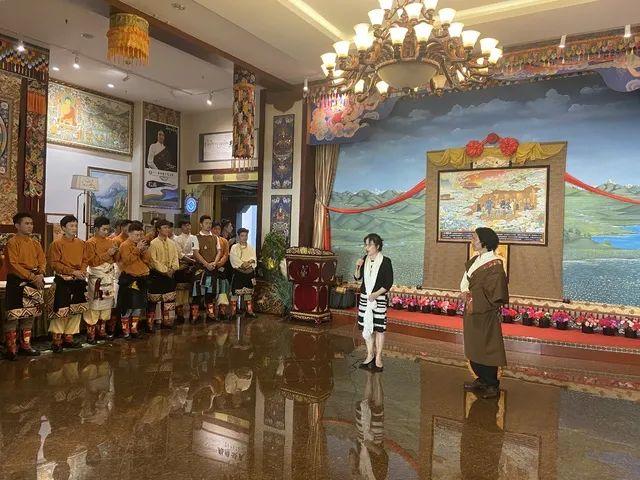 捐赠仪式上,四川省藏族唐卡传习基地的学生们为中国民族博物馆副馆长郑茜一行表演了精彩的民族歌舞。随后,郑茜与拉孟签订了唐卡作品《红船精神》捐赠书,并颁发了中国民族博物馆收藏证书。