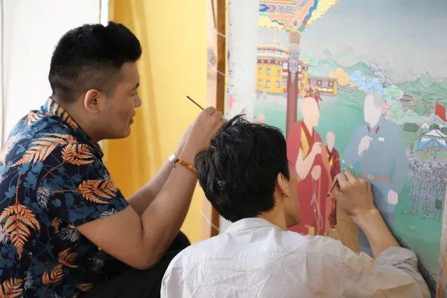 唐卡学徒吴旭表示:“我们参与创作了《红船精神》这幅唐卡,从中学习到了中国共产党的发展历程,这也让我更加热爱我们的祖国。”
