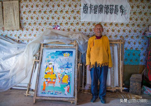 嘎玛德勒大师只会藏语,与他交流需要通过县文化馆的工作人员,老人说,他要以一己之力延续“噶玛噶赤画派”的古老传统并加以发扬光大。图文原创,欢迎关注:路灯摄影,每天为您分享旅途好风景。