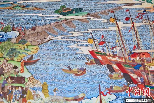 据悉,“东方大港”和“世界商埠”两幅画连接在一起,将完整呈现“东方第一大港”的风采,是泉州作为宋元时期世界海洋贸易中心的生动注解。(完)