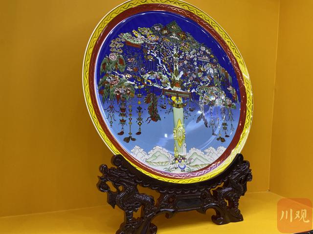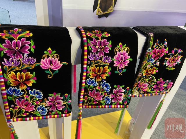 在今年西博会上,除了各类唐卡,甘孜展馆文创展区还展出了许多艺术珍品,如价值上亿元的天珠、掐丝珐琅、嘉绒刺绣等民族手工艺。这些艺术作品类型多变,艺术风格多样,展示了中国博大精深的传统文化和艺术创作,让参馆群众大饱眼福。