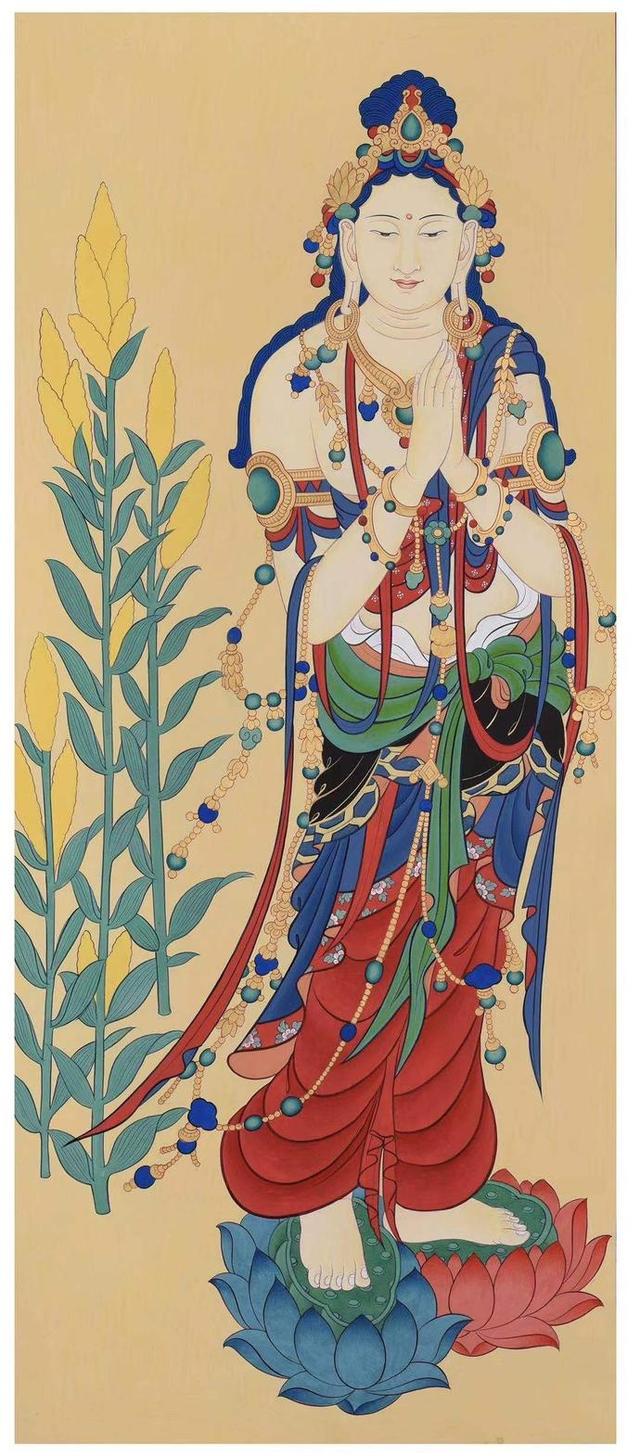 第一,这是从传统的绘画的第一点。那么另一方面你有了新的思路《妈祖》另外一个思路呢,张大千到敦煌去,他在敦煌临摹壁画时,有的人说他破坏了东方文化,其实他没有不完整的,我还是比较了解为什么呢,因为敦煌壁画它魏晋南北朝或者唐代,原来的泥掉了剥下来了,后来又封了一层泥,所以后来看了张大千去临摹时看的,他就是为了探讨比着表面这一层更早的壁画是什么样子,它可能是局部的探讨了一下,其实他没有去破会。