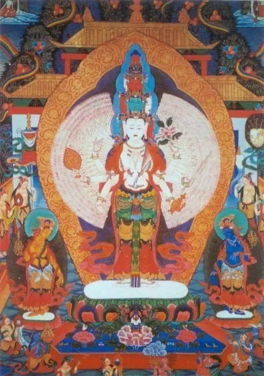 唐卡的历史可以追溯到吐蕃时期,藏族文化中独具特色的绘画艺术形式,品种和质地多种多样,多画于布或纸上,然后用绸缎缝制装裱,上端横轴有细绳,便于悬挂,下轴两端是有精美轴头,画面上覆有薄丝绢及双条彩带。也有极少量的缂丝,贴花,织锦,刺绣和珍珠唐卡。唐卡具有鲜明的民族特点、浓郁的宗教色彩和独特的艺术风格, 用明亮的色彩描绘出神圣的佛的世界。