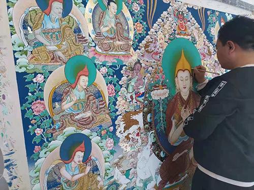 青海黄南藏族自治州同仁县素有“热贡艺术之乡”之称,青海热贡神笔唐卡艺术有限公司便成立于此,该公司运营的热贡神笔艺术馆主要从事唐卡的绘画与销售。其创始人为96岁的省级工艺美术大师尕藏,目前已培养了农民工唐卡彩绘绘画艺人1000余名。