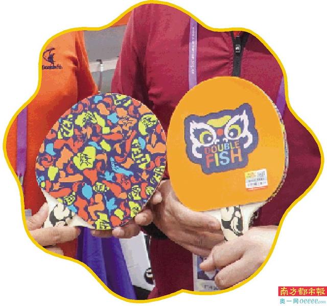 在本届广交会上,双鱼还展示了最新开发的“国潮新品”。这是双鱼与广东一家服装潮牌企业的合作产品,让向来只有红黑两色的乒乓球拍有了更多彩色的时尚元素,实现了行业的创新。