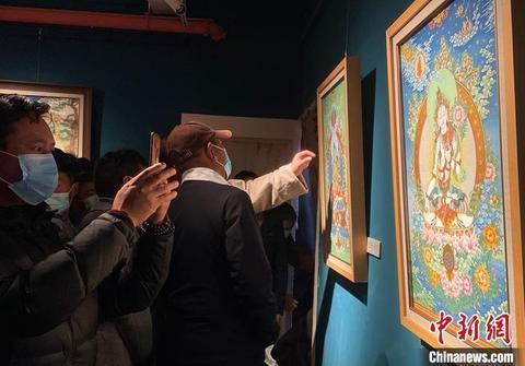 11月17日,由西藏自治区文学艺术界联合会主办的第七届“见即愿满”西藏精品唐卡展在拉萨拉开帷幕。 中新社记者 冉文娟 摄